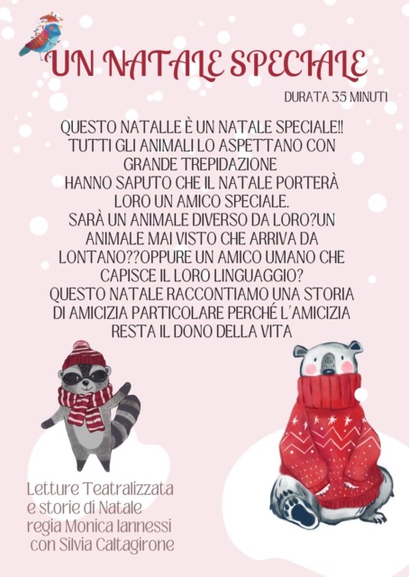 Domenica 21 dicembre, alle 16, in Biblioteca Archimede, lettura teatralizzata di storie di Natale a cura dell’Associazione Casa dei Popoli. “Questo Natale è un Natale speciale – spiegano i promotori – Tutti gli animali lo aspettano con grande trepidazione. Hanno saputo che il Natale porterà loro un Amico Speciale. Sarà un animale diverso da loro? Un animale mai visto che arriva da lontano?? Oppure un amico umano che capisce il loro linguaggio? Questo Natale raccontiamo una storia di amicizia particolare perché l’Amicizia resta il dono della vita”. Ingresso libero e gratuito fino ad esaurimento posti. Età: dai 3 ai 6 anni. Per info: 347.86.17.029