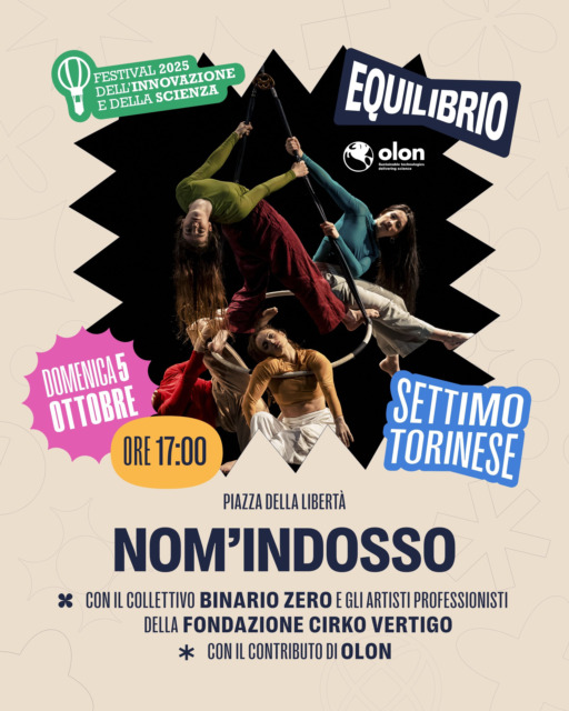 Domenica 5 ottobre alle ore 17.00 piazza della Libertà, a Settimo Torinese, sarà il palcoscenico per lo spettacolo “Non m’indosso” di apertura della XIII edizione del Festival dell’Innovazione e della Scienza.