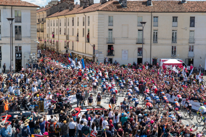 E’ stata baciata da una mite giornata di sole la prima tappa di questa edizione del Giro d’Italia con partenza da Venaria Reale e arrivo a Torino.