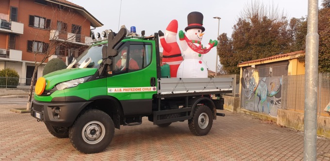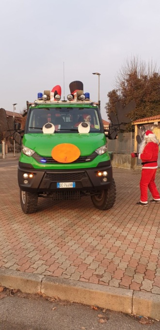 E’ quella che hanno deciso di fare i volontari della squadra di Protezione Civile dell’Aib, che dopo avere addobbato al meglio uno dei mezzi, trasformato in una renna, si sono recati davanti all’ingresso delle scuole, nell’ultimo giorno prima delle vacanze e tutti vestiti da Babbo Natale, hanno fatto gli auguri ai bimbi, distribuendo a tutti caramelle. Davvero una bella ed inattesa sorpresa, per tutti i presenti, nel giorno dell’anti-vigilia.