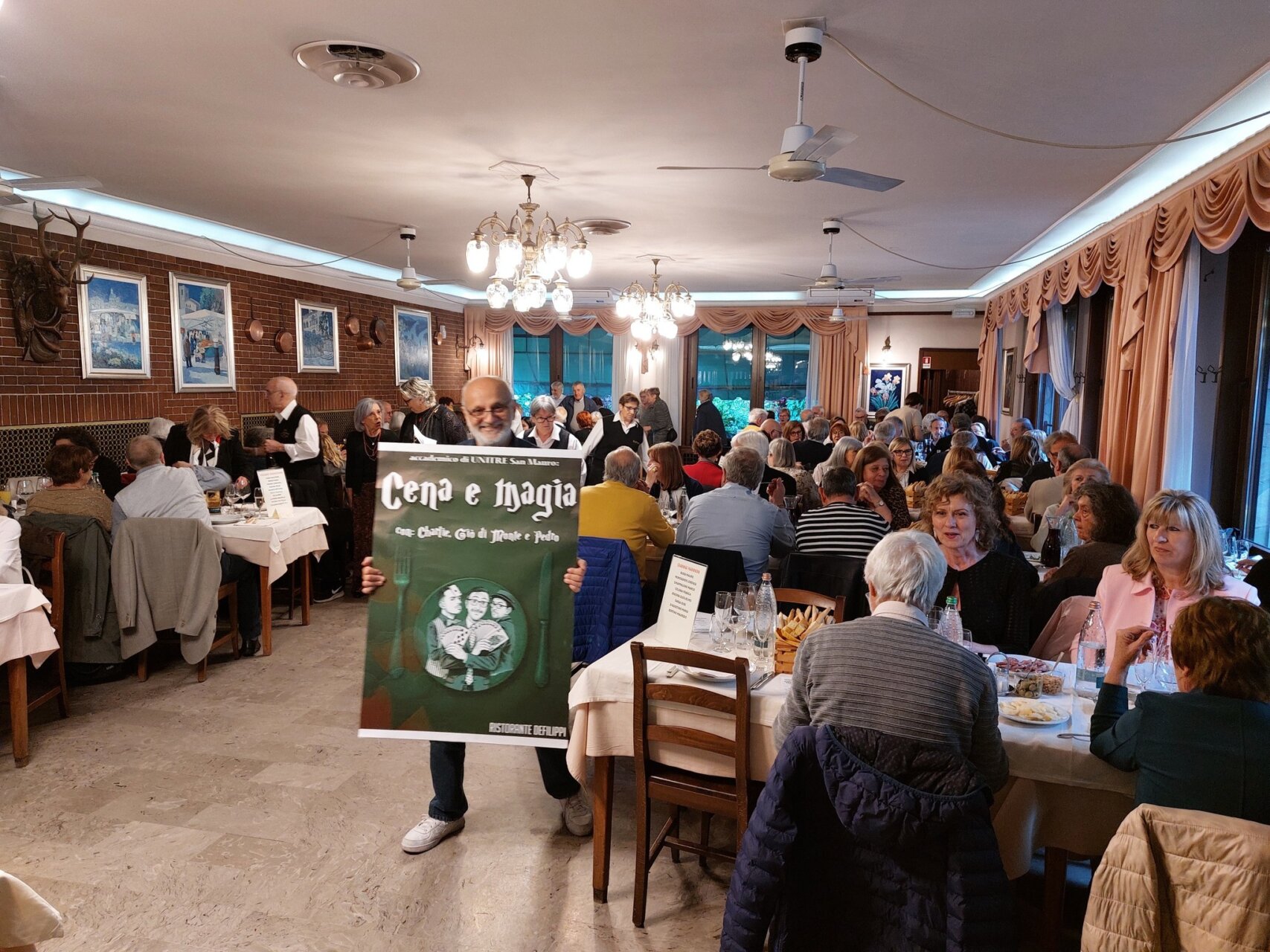 Nei giorni precedenti, spazio anche alla convivialità: la Cena di fine Anno Accademico ha regalato ai partecipanti una serata all’insegna del buon cibo, della compagnia e dello stupore, grazie all’intervento dei maghi Charlie, Gió di Monte e Pedro, che hanno animato i tavoli con numeri di magia.