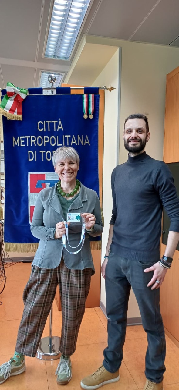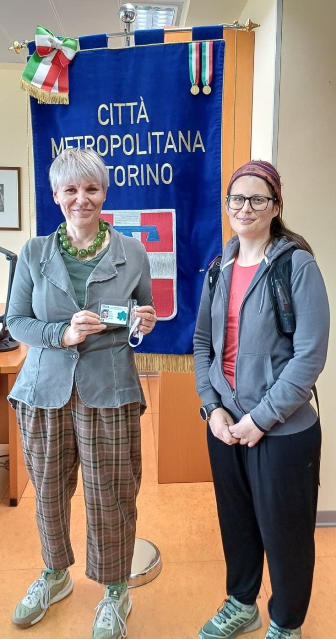 La consegna è avvenuta lunedì 23 febbraio da parte della consigliera metropolitana delegata alle professioni turistiche Sonia Cambursano, insieme ad altri quattro giovani provenienti dal territorio: Alessia Giusto (Locana), Matteo Giai (Villar Perosa) e Arianna Mantoan (Chieri), abilitati come accompagnatori turistici naturalistici, e Giulia Sanitate (Torino), accompagnatrice turistica.